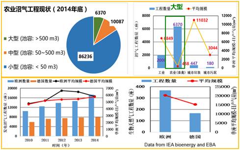 圖2 我國、歐洲及德國的沼氣工程現(xiàn)狀對比